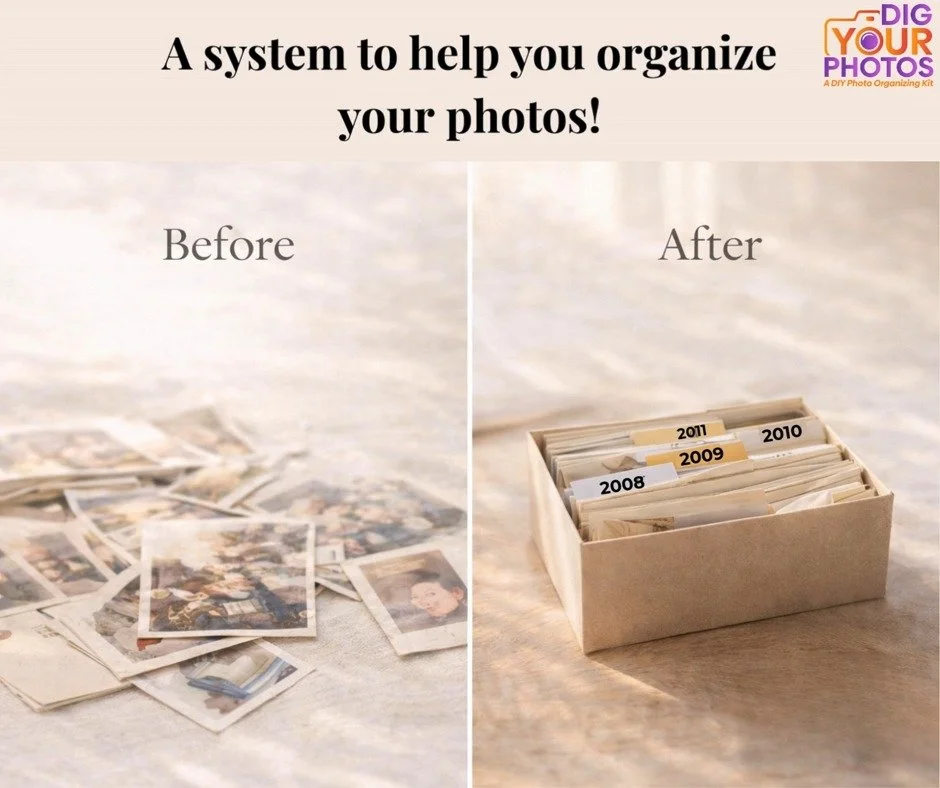I was surrounded by boxes of photos and media inherited from my father and grandfather, feeling overwhelmed and unsure where to begin. Through this journey, I developed a deep appreciation for organizing photos and preserving family stories. This experience led me to create DIG YOUR PHOTOS!, a DIY photo organizing kit designed to help others navigate the process with ease.